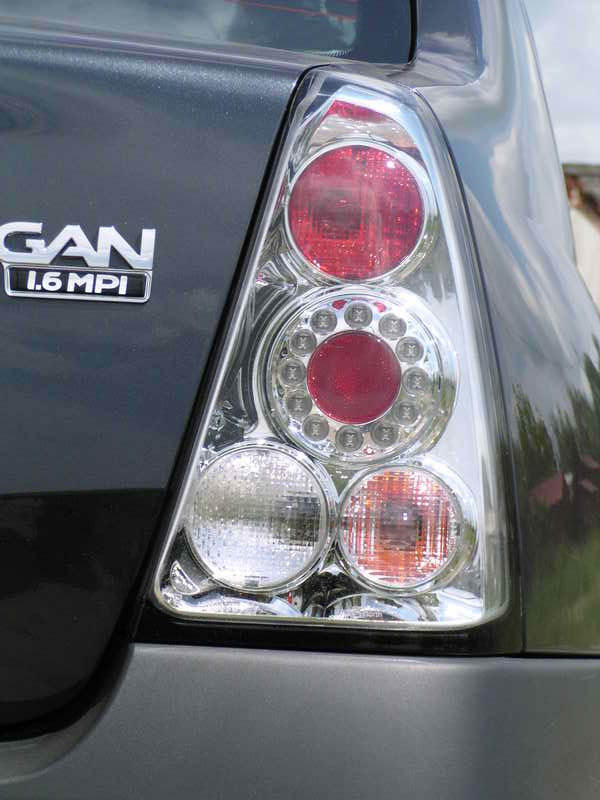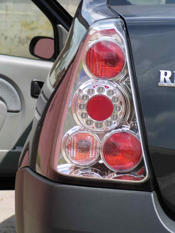 Чиста пацанские кругляши и блестючки, дюжина модных светодиодов. Лично я - не в восторге (чего нельзя сказать об окружающих :) Но родные штатные фонари... особенно белый "овальчик" заднего хода на правом фонаре - это тихий ужас... В центре - габарит с отражателем внутри, сверху "стопарь", снизу слева поворотник, справа - противотуманка. |
